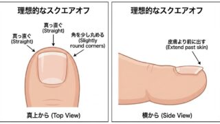 巻き爪の原因は「間違った爪の切り方」かも?実は爪の角を切る「バイアスカット」や「深爪」は超危険です。この記事では、巻き爪を確実に防ぐ正しい切り方「スクエアオフ」の手順と、絶対にやってはいけない2つのNG行動を分かりやすく解説します。